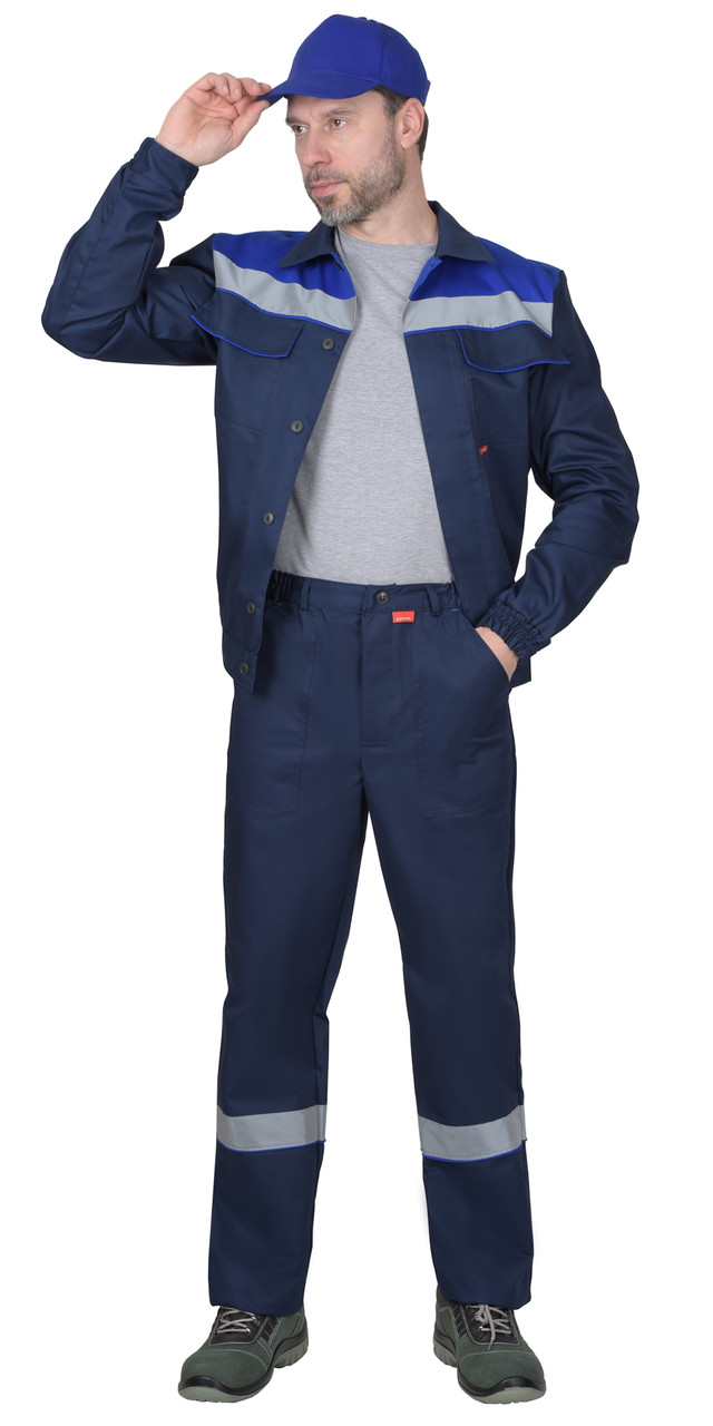 Костюм летний состоит из куртки и брюк. В костюме предусмотрена лента светоотражающая ш.50 мм, что обеспечивает видимость рабочего при любом освещении.