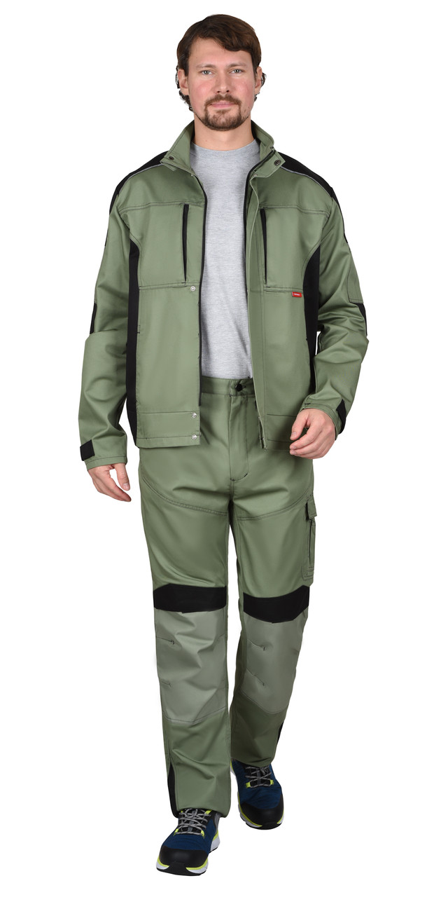Куртка двухцветная, прямого силуэта, укороченная, с воротником стойка, с центральной застёжкой на молнию от края воротника до низа, накрытую ветрозащитной планкой и внутренней короткой планкой по правому борту, с нагрудными карманами с молнией, с нижними карманами в шве. Рукава втачные, объём по низу рукава регулируется хлястиком с текстильной застёжкой «липучка». В куртке предусмотрен СВ кант.